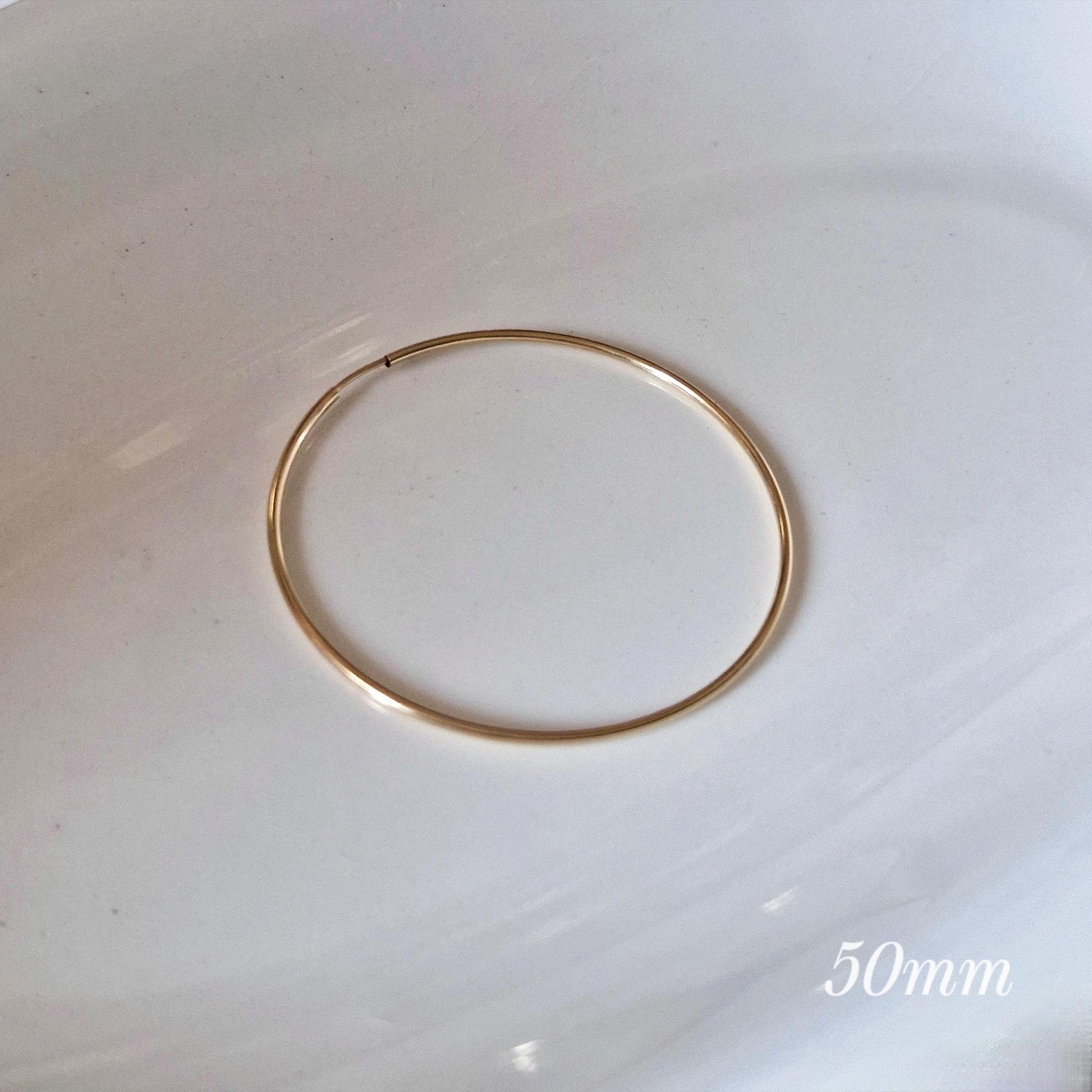 1.5mm gold filled hoop earring. lightweight pipe hoop earrings. endless hoop gold filled.